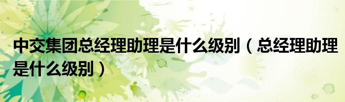 关于中交集团总经理助理是什么级别,总经理助理是什么级别这个很多人还不知道,今天菲菲来为大家解答以上的问题,现在让我们一起来看看吧!