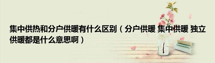 关于集中供热和分户供暖有什么区别,分户供暖 集中供暖 独立供暖都是什么意思啊这个很多人还不知道,今天菲菲来为大家解答以上的问题,现在让我们一起来看看吧!