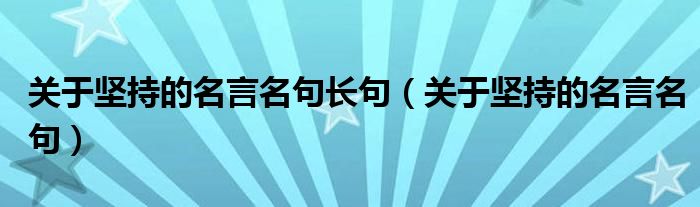 关于关于坚持的名言名句长句,关于坚持的名言名句这个很多人还不知道,今天菲菲来为大家解答以上的问题,现在让我们一起来看看吧!