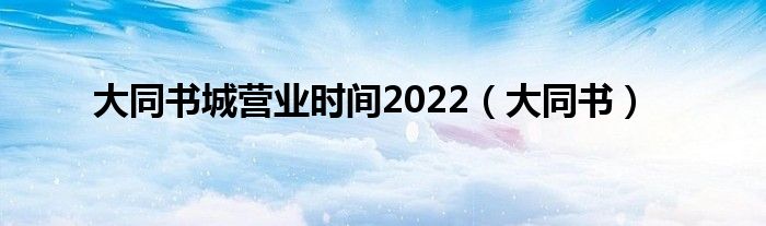关于大同书城营业时间2022,大同书这个很多人还不知道,今天菲菲来为大家解答以上的问题,现在让我们一起来看看吧!