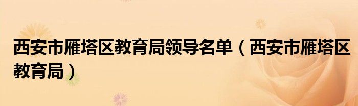 关于西安市雁塔区教育局领导名单,西安市雁塔区教育局这个很多人还不知道,今天菲菲来为大家解答以上的问题,现在让我们一起来看看吧!