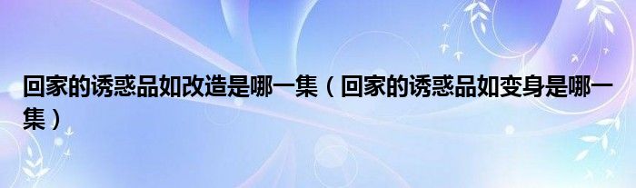 关于回家的诱惑品如改造是哪一集,回家的诱惑品如变身是哪一集这个很多人还不知道,今天菲菲来为大家解答以上的问题,现在让我们一起来看看吧!