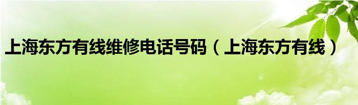 关于上海东方有线维修电话号码,上海东方有线这个很多人还不知道,今天菲菲来为大家解答以上的问题,现在让我们一起来看看吧!