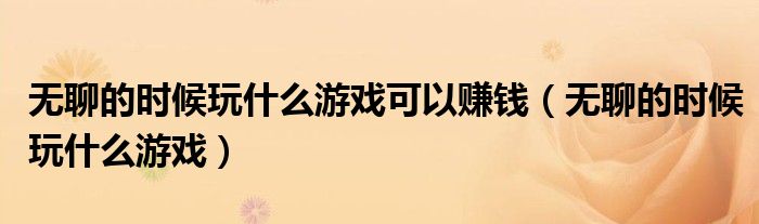 无聊的时候玩什么游戏可以赚钱(无聊的时候玩什么游戏)