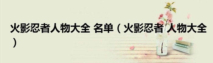 关于火影忍者人物大全 名单,火影忍者 人物大全这个很多人还不知道,今天菲菲来为大家解答以上的问题,现在让我们一起来看看吧!