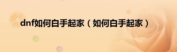 关于dnf如何白手起家,如何白手起家这个很多人还不知道,今天菲菲来为大家解答以上的问题,现在让我们一起来看看吧!