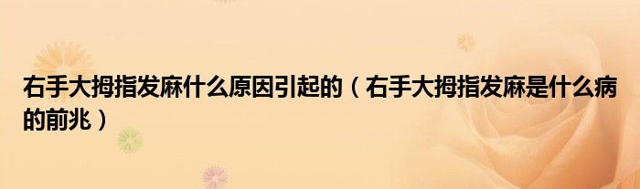 关于右手大拇指发麻什么原因引起的,右手大拇指发麻是什么病的前兆这个很多人还不知道,今天菲菲来为大家解答以上的问题,现在让我们一起来看看吧!