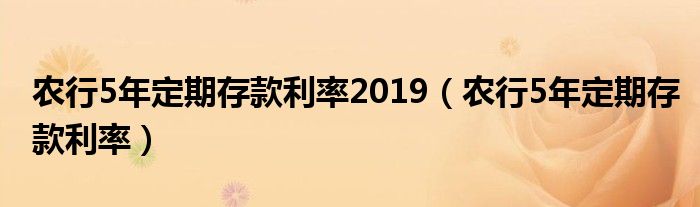 关于农行5年定期存款利率2019,农行5年定期存款利率这个很多人还不知道,今天菲菲来为大家解答以上的问题,现在让我们一起来看看吧!