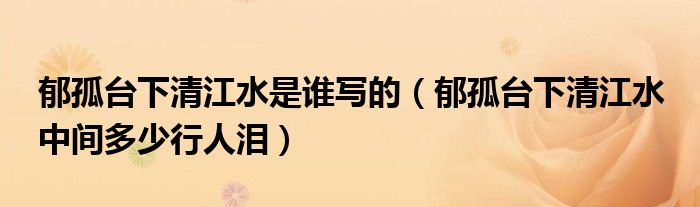 关于郁孤台下清江水是谁写的,郁孤台下清江水 中间多少行人泪这个很多人还不知道,今天菲菲来为大家解答以上的问题,现在让我们一起来看看吧!