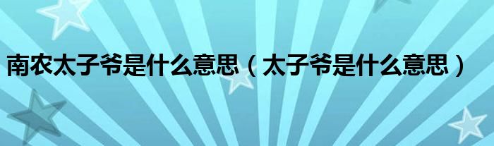 关于南农太子爷是什么意思,太子爷是什么意思这个很多人还不知道,今天菲菲来为大家解答以上的问题,现在让我们一起来看看吧!