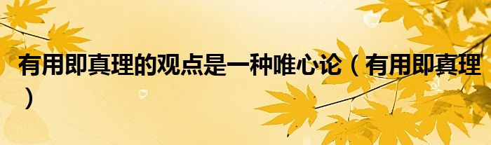 关于有用即真理的观点是一种唯心论,有用即真理这个很多人还不知道,今天菲菲来为大家解答以上的问题,现在让我们一起来看看吧!
