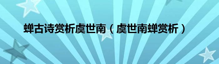 关于蝉古诗赏析虞世南,虞世南蝉赏析这个很多人还不知道,今天菲菲来为大家解答以上的问题,现在让我们一起来看看吧!