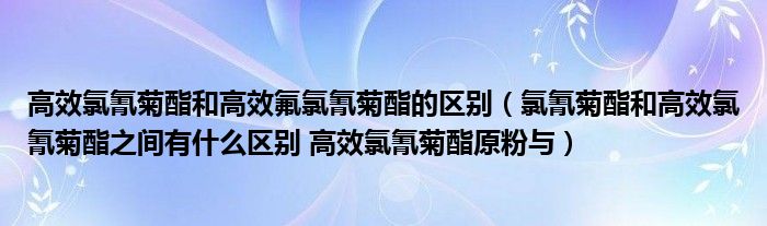 关于高效氯氰菊酯和高效氟氯氰菊酯的区别,氯氰菊酯和高效氯氰菊酯之间有什么区别 高效氯氰菊酯原粉与这个很多人还不知道,今天菲菲来为大家解答以上的问题,现在让我们一起来看看吧!