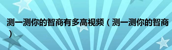 关于测一测你的智商有多高视频,测一测你的智商这个很多人还不知道,今天菲菲来为大家解答以上的问题,现在让我们一起来看看吧!