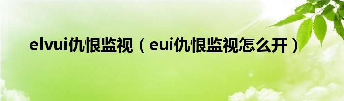 关于elvui仇恨监视,eui仇恨监视怎么开这个很多人还不知道,今天菲菲来为大家解答以上的问题,现在让我们一起来看看吧!