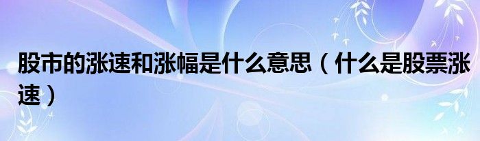 股市的涨速和涨幅是什么意思(什么是股票涨速)