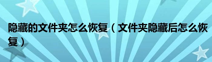 关于隐藏的文件夹怎么恢复,文件夹隐藏后怎么恢复这个很多人还不知道,今天菲菲来为大家解答以上的问题,现在让我们一起来看看吧!