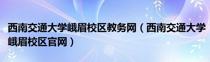 关于西南交通大学峨眉校区教务网,西南交通大学峨眉校区官网这个很多人还不知道,今天菲菲来为大家解答以上的问题,现在让我们一起来看看吧!