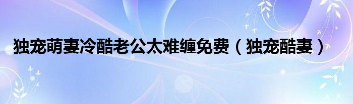 关于独宠萌妻冷酷老公太难缠免费,独宠酷妻这个很多人还不知道,今天菲菲来为大家解答以上的问题,现在让我们一起来看看吧!