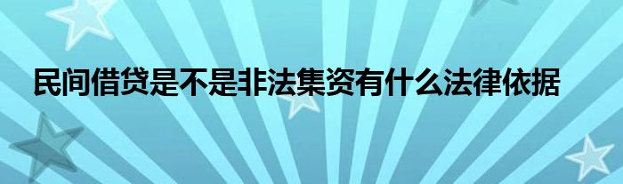 关于民间借贷是不是非法集资有什么法律依据这个很多人还不知道,今天菲菲来为大家解答以上的问题,现在让我们一起来看看吧!