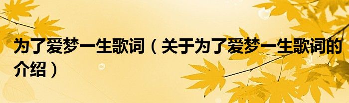 大家好,今天小乐来为大家解答以上的问题。为了爱梦一生歌词,关于为了爱梦一生歌词的介绍很多人还不知道,现在让我们一起来看看吧!