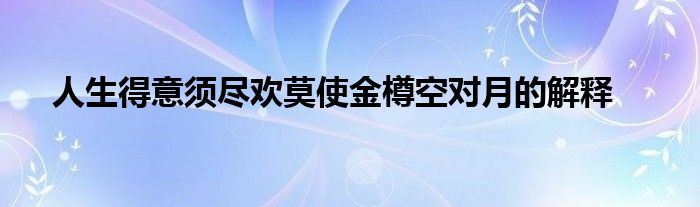 1、人生得意须尽欢,莫使金樽空对月之注解:“人生在世每逢得意之时,理应尽情欢乐,切莫让金杯空对皎洁的明月。