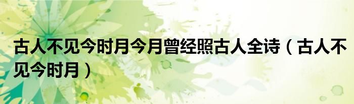 古人不见今时月今月曾经照古人全诗(古人不见今时月)