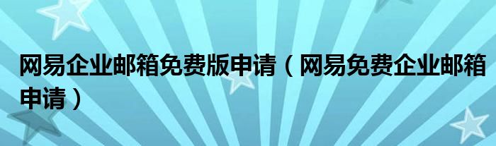 关于网易企业邮箱免费版申请,网易免费企业邮箱申请这个很多人还不知道,今天菲菲来为大家解答以上的问题,现在让我们一起来看看吧!