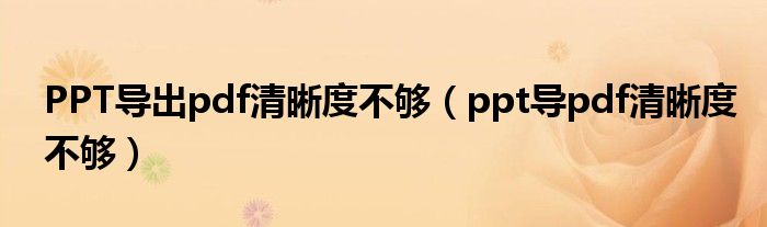 关于PPT导出pdf清晰度不够,ppt导pdf清晰度不够这个很多人还不知道,今天菲菲来为大家解答以上的问题,现在让我们一起来看看吧!