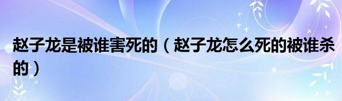 关于赵子龙是被谁害死的,赵子龙怎么死的被谁杀的这个很多人还不知道,今天菲菲来为大家解答以上的问题,现在让我们一起来看看吧!