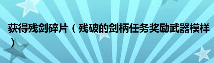 关于获得残剑碎片,残破的剑柄任务奖励武器模样这个很多人还不知道,今天菲菲来为大家解答以上的问题,现在让我们一起来看看吧!