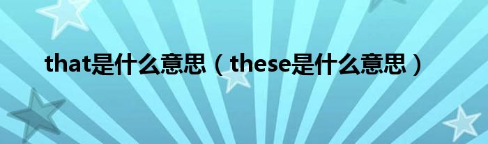 关于that是什么意思,these是什么意思这个很多人还不知道,今天菲菲来为大家解答以上的问题,现在让我们一起来看看吧!
