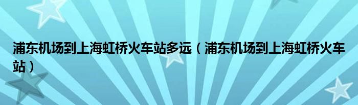 关于浦东机场到上海虹桥火车站多远,浦东机场到上海虹桥火车站这个很多人还不知道,今天菲菲来为大家解答以上的问题,现在让我们一起来看看吧!
