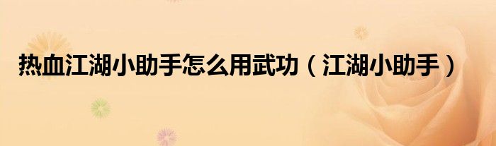 关于热血江湖小助手怎么用武功,江湖小助手这个很多人还不知道,今天菲菲来为大家解答以上的问题,现在让我们一起来看看吧!