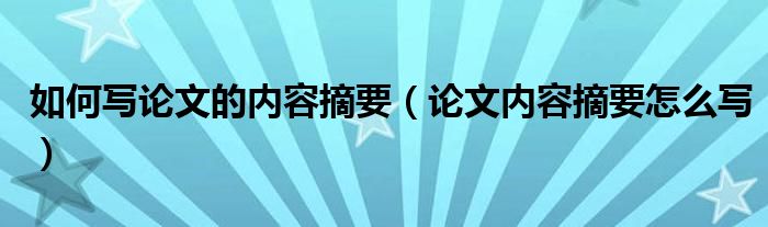 如何写论文的内容摘要(论文内容摘要怎么写)