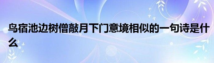 关于鸟宿池边树僧敲月下门意境相似的一句诗是什么这个很多人还不知道,今天菲菲来为大家解答以上的问题,现在让我们一起来看看吧!