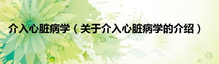 大家好,今天小乐来为大家解答以上的问题。介入心脏病学,关于介入心脏病学的介绍很多人还不知道,现在让我们一起来看看吧!