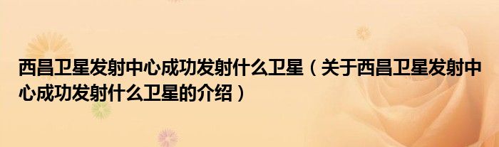 西昌卫星发射中心成功发射什么卫星(关于西昌卫星发射中心成功发射什么卫星的介绍)