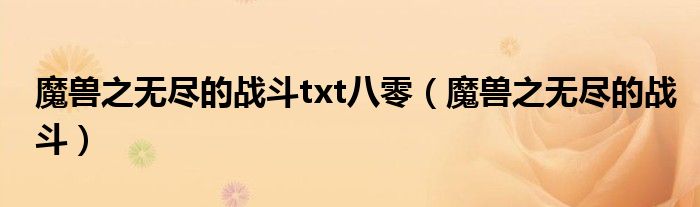 关于魔兽之无尽的战斗txt八零,魔兽之无尽的战斗这个很多人还不知道,今天菲菲来为大家解答以上的问题,现在让我们一起来看看吧!