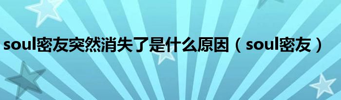 大家好,小晋来为大家解答以下问题,关于soul密友突然消失了是什么原因,soul密友很多人还不知道,今天让我们一起来看看吧!