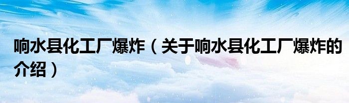 大家好,今天小乐来为大家解答以上的问题。响水县化工厂爆炸,关于响水县化工厂爆炸的介绍很多人还不知道,现在让我们一起来看看吧!