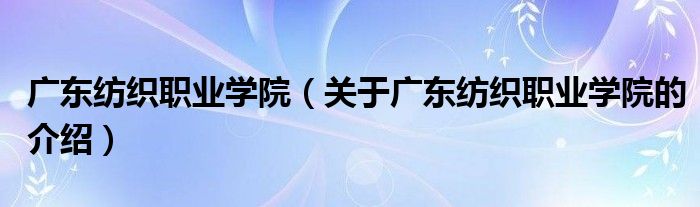 大家好,今天小乐来为大家解答以上的问题。广东纺织职业学院,关于广东纺织职业学院的介绍很多人还不知道,现在让我们一起来看看吧!