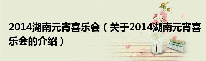 大家好,今天小乐来为大家解答以上的问题。2014湖南元宵喜乐会,关于2014湖南元宵喜乐会的介绍很多人还不知道,现在让我们一起来看看吧!