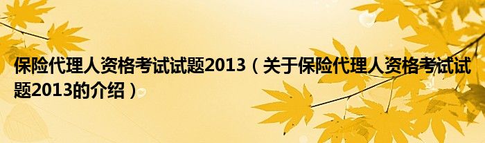 保险代理人资格考试试题2013(关于保险代理人资格考试试题2013的介绍)