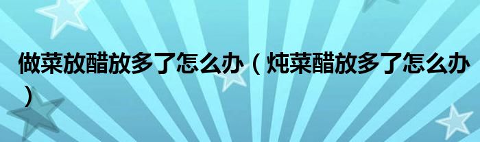 大家好,小晋来为大家解答以下问题,关于做菜放醋放多了怎么办,炖菜醋放多了怎么办很多人还不知道,今天让我们一起来看看吧!
