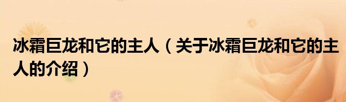 大家好,今天小乐来为大家解答以上的问题。冰霜巨龙和它的主人,关于冰霜巨龙和它的主人的介绍很多人还不知道,现在让我们一起来看看吧!
