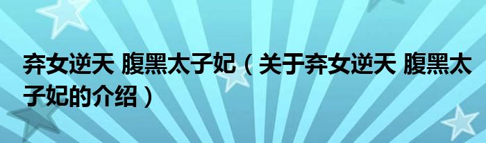 弃女逆天腹黑太子妃(关于弃女逆天腹黑太子妃的介绍)