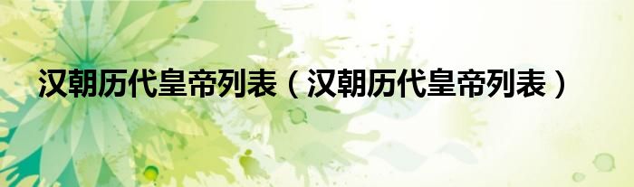 关于汉朝历代皇帝列表,汉朝历代皇帝列表这个很多人还不知道,今天菲菲来为大家解答以上的问题,现在让我们一起来看看吧!