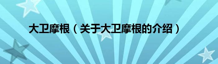 大卫摩根(关于大卫摩根的介绍)