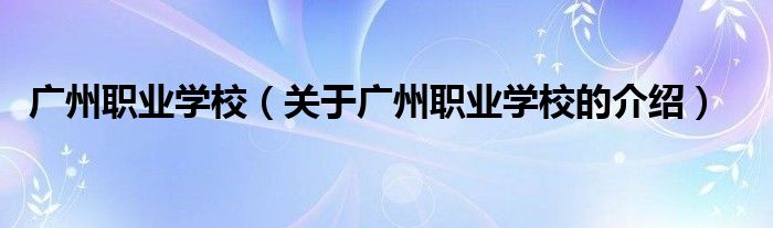 大家好,小都来为大家解答以上的问题。广州职业学校,关于广州职业学校的介绍很多人还不知道,现在让我们一起来看看吧!